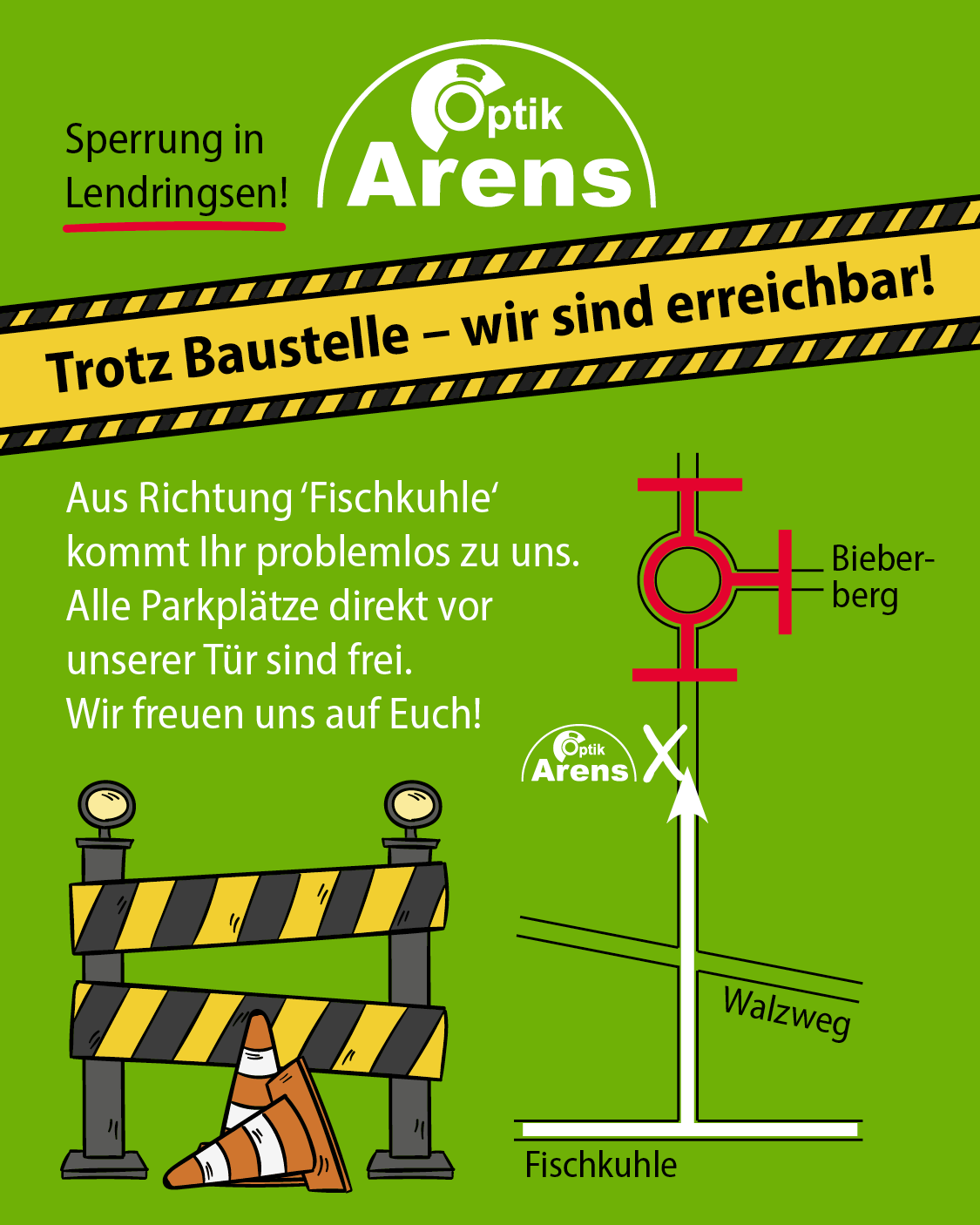 | Optik Arens – Brillen aus Leidenschaft Wir begeistern uns für Brillen und freuen uns darauf, dies mit euch zu teilen. Das schaffen wir mit neusten Produkten, angesagten Brillenfassungen, modernster Messtechnik und bestem Service zu wirklich fairen Preisen. Bei uns findet ihr eine riesen Auswahl an Brillenfassungen, Sonnenbrillen, Kontaktlinsen und vielen Accessoires. Kommt vorbei und überzeugt euch selbst von dem einmaligen Einkaufserlebnis.  |